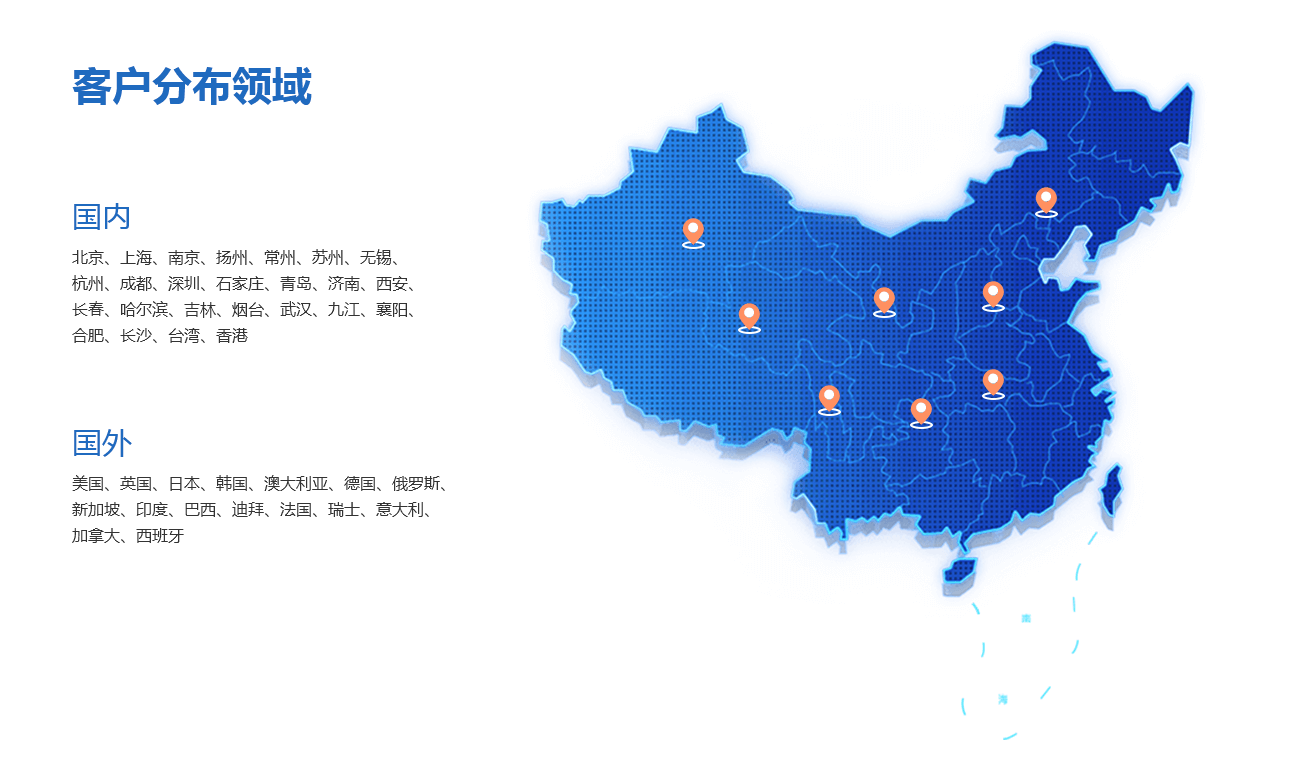 明佳”客服分部領(lǐng)域”極為廣闊,國內(nèi)主要分布區(qū)域有:北京、上海、南京、揚(yáng)州、常州、蘇州、無錫、杭州、成都、深圳、石家莊、青島、濟(jì)南、西安、長春、哈爾濱、吉林、煙臺、武漢、九江、襄陽、合肥、長沙、臺灣、香港;國外主要分布區(qū)域有:美國、英國、日本、韓國、澳大利亞、德國、俄羅斯、新加坡、新加坡、印度、巴西、迪拜、法國、瑞士、意大利、加拿大、西班牙。